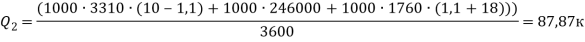 где , – удельная теплоемкость продукта соответственно охлажденного (для гороха) и замороженного (для гороха ; – температура начала замерзания соков в продукте, (для гороха ); ; -скрытая теплота замораживания, Дж/кг, – температура хранения горошка ; m – почасовой грузооборот в сутки, кг/сутки, m=1000кг; 3600-количество минут в сутки.