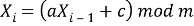 где m — модуль(m≥2), а — множитель(0≤a≤m), с — приращение (0≤
