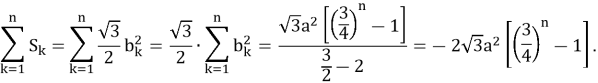 Задача № 8. Длина стороны равностороннего треугольника равна а. На его высоте, как на стороне, построен новый равносторонний треугольник. На высоте нового треугольника, как на стороне, построен еще один равносторонний треугольник. И т. д. Найдите сумму периметров и сумму площадей всех таких треугольников.