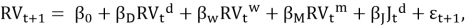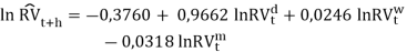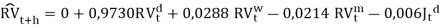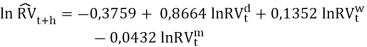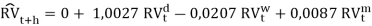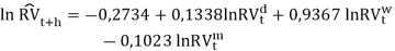Оценка коэффициентов для базовой модели HAR-RV (Таблица 2) показала, что для всех стран дневная компонента