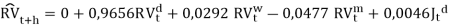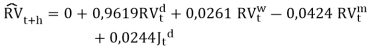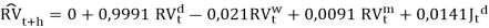 Модель HAR-RV-J (Таблица 4) показала схожую структуру коэффициентов, однако добавление компоненты скачков