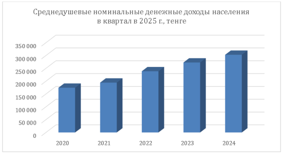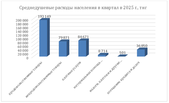 Денежные расходы населения в среднем на душу составили 403 756 тнг в квартал.