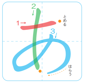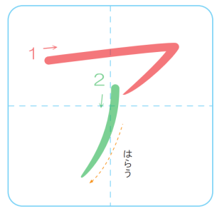 Рис. 1. Порядок написание слоговой азбуки А) — катакана, Б) — хирагана