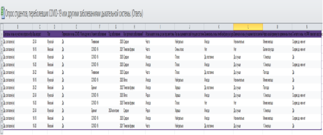 Был проведен опрос среди 12 переболевших студентов, о причинах и датах их заболеваний, также о роли ЛФК и последствиях упражнений. Все в открытом доступе.
