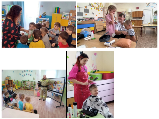 В рамках проекта «Встреча с интересными людьми разных профессий» проходят образовательные развивающие встречи с мамами: кулинаром, врачом-офтальмологом, музейным работников, флористом, медицинской сестрой, помощником воспитателя; папами: пожарным, рабочим по зданию, спортивным тренером.