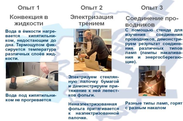 Для демонстрации возможностей использования УМК, был проведён мастер-класс «Занимательная физика» для обучающихся колледжа и их родителей. В ходе мастер-класса участники проводили физические опыты, наблюдали знакомые явления с научным подходом, выявили проявление магнитного поля, создаваемого смартфоном. Наглядно увидели последствия последовательного соединения лампы накаливания с энергосберегающей лампой.