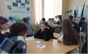Квест-экскурсия «Путешествие в прошлое». Игра приобщает студентов к истории и культуре этносов Хабаровского края, способствует развитию уважения к истории, культуре, традициям этнических народов, развивает у молодежи творческие и познавательные способности, учит работать в команде. Информационное содержание мероприятия включает следующие рубрики: факты из истории коренных народов Хабаровского края; природа Хабаровского края; наука и техника в Хабаровском крае; культура и спорт коренных народов нашего региона; земляки.