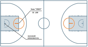 Вместо специализированного звенящего мяча, можно использовать стандартный, звука удара при ведении достаточно для ориентации «ОКО» в пространстве. |