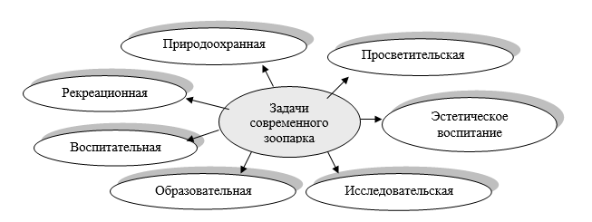 Законодательно установлен еще ряд задач функционирования зоопарка, но детальное изучение данной тематики позволяет значительно расширить их круг (рис. 1). Поясним смысл каждой задачи.