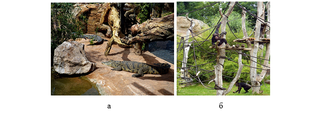 Рис. 3. Примеры экспозиций Биопарка в Валенсии (а) и зоопарка в Лейпциге (б) [10]