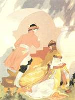 Принцесса: щёки у неё оставались розовыми, а губы красными, точно кораллы. Красота её так сияла, что даже золото вокруг неё казалось тусклым и бледным, одета и с удовольствием поглядывала на себя в зеркала. Фасон её платья вышел из моды по крайней мере сто лет назад. Впрочем, и в старомодном платье она была лучше всех на свете. |