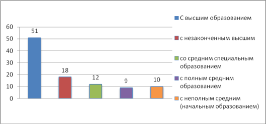По сфере занятости респонденты распределились следующим образом: работники промышленности, строительства, транспорта — 7 человек; работники сельского хозяйства — 3 человека; работники образования, науки, культуры, здравоохранения — 22 человека; работники торговли, общепита, бытового обслуживания — 12 человек; работники правоохранительных органов, налоговой — 5 человек; руководители предприятий, организаций — 4 человека; специалисты органов муниципального государственного управления — 2 человека; служащие банка, страховой компании — 3 человека; предприниматели — 4 человека; пенсионеры — 19 человек; занимаются домашним хозяйством — 1человек; временно не работают — 3 человека; студенты, учащиеся — 15 человек.