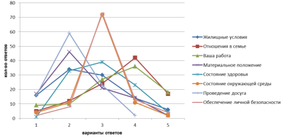 По диаграмме видно, что большая часть респондентов не смогли оценить свое социальное самочувствие в плане состояния окружающей среды и обеспечения личной безопасности.