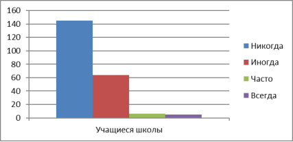 Социологический опрос проводился среди учащихся 5–11 классов (223 респондента) нашей школы, для того чтобы выяснить какие газированные напитки они употребляют, и знают ли об их влиянии на организм. Анализируя данные анкетирования, мы пришли к выводу, что запланированные нами эксперименты актуальны. (см Приложение № 1)