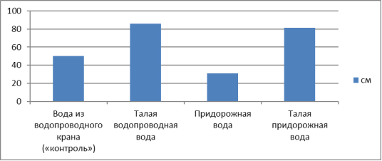 О чудодейственной способности талой воды помогать росту растений люди знали еще в глубокой древности. Снег заготавливали весной для полива сада и огорода, в талой воде замачивали семена, на ее основе готовили жидкие подкормки, поливали рассаду и комнатные цветы. Растения буквально на глазах ускоряли рост, развивались крепкими, здоровыми, обладали повышенным иммунитетом к болезням, меньше поражались вредителями и давали более высокий урожай хорошего качества. Данное свойство мы так же решили проверить экспериментально.