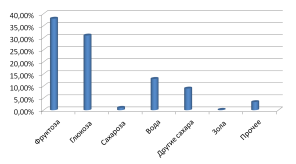 В начале исследования рассмотрим состав меда. Основными компонентами мёда является: фруктоза (38,0 %), глюкоза (31,0 %), сахароза (1,0 %), вода (13,0–20,0 %), другие сахара (мальтоза, мелицитоза и т.д) 9,0 %, зола (0,17 %), прочее (3,38 %). В составе преобладают органические кислоты, из которых наибольшее количество приходится на яблочную кислоту. Мед богат витаминами [4].