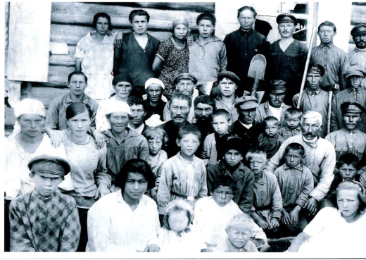 Эта фотография была сделана как раз, в то время, когда образовался колхоз «Октябрьской революции» в 1931 году. Работники колхоза вместе со своими детьми фотографировались около дома Ипатьева Герасима Герасимовича.