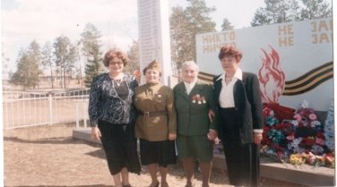 Рис.17. 9 мая в селе Чапаево, справа на лево: Олейник Е.Л, Ипатьева А.М, Измайлова Р.Н., Яныгина О.А.
