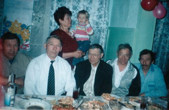 Рис.18. Встреча семьи Соиных, слева на право: Соин О.Л, Соин И.Л., Соин Г.Л., Соин А.Л., Соин М.Л. и Олейник Е.Л. с внучкой Марией, 2005год.
