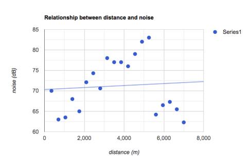 Третья гипотеза гласила: «Шум увеличивается по мере того, как мы едем на восток от старого города» и не подтверждается исследованиями. Коэффициент Спирмена равен 0,0568, что означает отсутствие корреляции. Географическая теория (рис. 1.4) объясняет точки аномалии с 16 по 20, показывающие жилые дома высшего класса. Следовательно, третья гипотеза принимается частично.