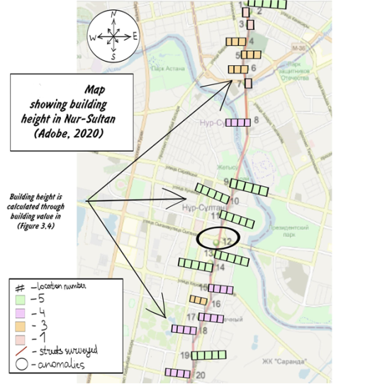 Рис. 3. Transect map of Nur-Sultan, Kazakhstan (Tukhtarev, 2019)