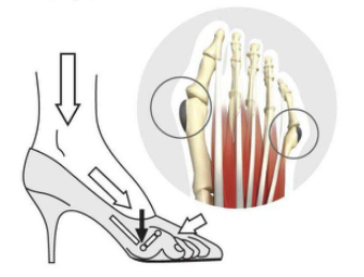 Особенно важную роль в положении нашего тела играет стопа. Стопы — части тела, которые удерживают весь вес и равномерно его распределяют. Из-за ношения узкой обуви происходит нарушение циркуляции крови — это может привести к образованию тромбов. Неэффективная стопа передаст искаженную информацию в таз и позвоночник. Ухудшается опора в стопе, происходит разрастание косточки большого пальца и появляется плоскостопии. Плоскостопие — такое положение стоп, при котором большая часть подошвы в положении стоя соприкасается с землёй. Чаще всего для лечения этого заболевания необходимо носить специальные стельки, поддерживающие стопу, также стоит делать лечебную гимнастику. При выраженном плоскостопии рекомендуется носить специальную ортопедическую обувь.