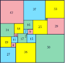 равных квадратов. Очень долгое время оставался нерешенным вопрос относительно разбиения квадрата на несколько неравных по площади квадратов. Данная задача была успешно решена немецким геометром Р.Шпаргом, который смог разбить квадрат на 55 попарно различных квадратов. Вскоре после этого в 1940 году английские математики А. Г. Стоун и У. Т. Татти установили, что каждый квадрат можно (и притом даже двумя различными способами) разбить на 28 попарно различных квадратов. Присоединившиеся к ним Р.Брукс и С.Смит, разбили квадрат на 26 попарно неравных квадратов. Через несколько лет голландский математик А.Дуйвестийн смог разбить квадрат на 21 попарно неравных между собой квадрата (рис.1). Кроме того, многих математиков интересовал вопрос о том можно ли разбить прямоугольник на попарно различные квадраты. Решение данной задачи было указано польским математиком З.Мороном, а также повторно найдено индийским математиком С.Чуолой, которые смогли доказать, что из девяти квадратов со сторонами 1,4,7,8,9,10,14,15,18 можно сложить прямоугольник (разбиение Морана). В полном объеме данная задача была решена Р.Шпаргом, как уже было сказано выше. Известным математиком А. Н. Колмогоровым было придумано разбиение единичного квадрата, в котором каждый квадрат имеет с диагональю квадрата хотя бы одну общую точку (рисунок2). На рисунке 3 приведен пример квадрирования квадрата со стороной 14. В данном разбиении длины сторон квадратов подчиняются следующей закономерности: 1квадрат площадью