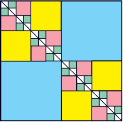 и так далее, пока мы не дойдем до последнего центрального единичного квадрата, который разбит на