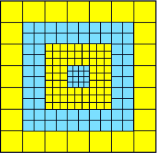Кроме того, нам показался не случайным тот факт, что рамки, на которые разделен исходный квадрат, окрашены в два различных цвета, и мы решили подсчитать поочередно количество квадратов в синих и желтых рамках, а затем найти разницу между полученными результатами. Оказалось, что при четном n квадратов желтого цвета больше чем квадратов синего цвета на