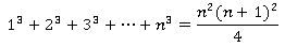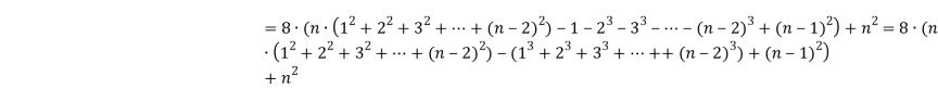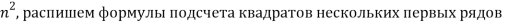 для удобства вычисления мы решили воспользоваться формулами суммы первой степени квадратов и кубов первых n натуральных чисел: