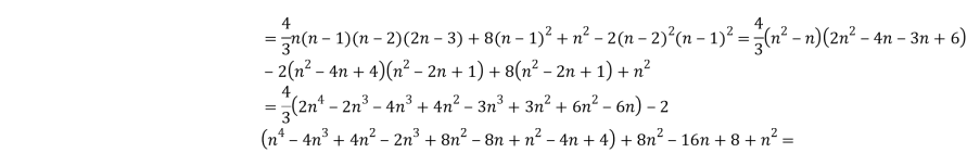 запишем наше исходное выражение, заменив сумму квадратов и кубов первых (n-2) слагаемых на формулы (3) и (4) соответственно, получим