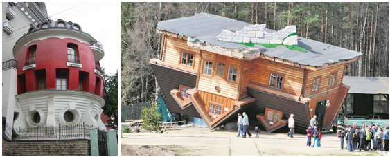 Одним из абсурдных стилей архитектуры, по нашему мнению, является китч, само название которого, полностью отражает всю его суть. В переводе с немецкого, китч — это халтура, безвкусица, «дешёвка». Архитекторы, работавшие в данном стиле, сознательно «выпячивали» какие-то особенности здания, создавая такие, как «Дом — яйцо» или «Перевёрнутый дом». По утверждению А. Седых, известные дизайнеры и архитекторы часто, таким образом, иронизируют по поводу современной культуры, показывая, насколько показная пышность и использование лепнины из папье-маше далеки от настоящего искусства [16].