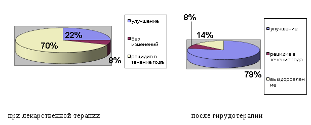 Рис. 5.Результаты лечения гирудотерапией при тромбофлебите