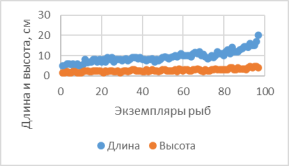 В январе 2021 г. были проведены измерения пластических характеристик ротана — длина, высота, вес [2]. Исследованы 97 экземпляров, пойманных в оз. Море с мая по ноябрь 2020 г. Возраст особей, определялся по отолитам.