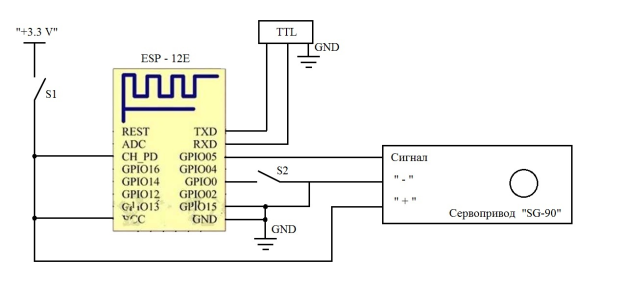 Управление рукой выполнено на базе микросхемы ESP_12E на процессоре ESP8612. Для сгибания пальцев протеза применялся сервопривод SG-90 с тяговым усилием 2 кг. Источником питания является аккумуляторUltra Fire 16340 на 3,6 В.