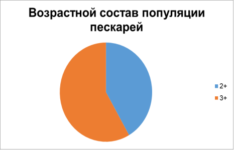 Данные о возрастном составе популяций быстрянки и пескаря представлены в приложении А (рис. 6). Средний возраст пескарей составил 2,6 лет, быстрянок — 2, 2 года, голавлей и форелей — 6 и 4 года соответственно.