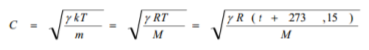 где: γ — показатель адиабаты: 5/3 для одноатомных газов, 7/5 для двухатомных (и для воздуха), 4/3 для многоатомных; k — постоянная Больцмана; R — универсальная газовая постоянная; T — абсолютная температура в кельвинах; t — температура в градусах Цельсия; m — молекулярная масса; M — молярная масса.