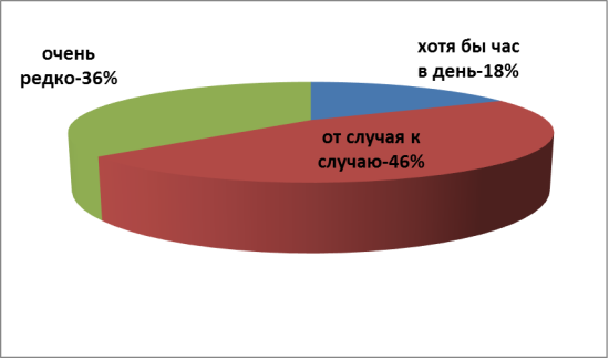 «Как часто вы читаете?» ответили: «хотя бы час в день» – 18%; «от случая к случаю» – 46%; «очень редко» – 36%.