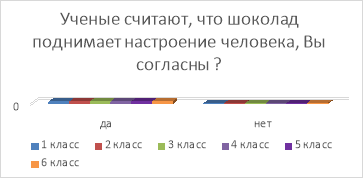 Большинство опрошенных 109 из 120 школьников согласны с мнением, что шоколад поднимает настроение.