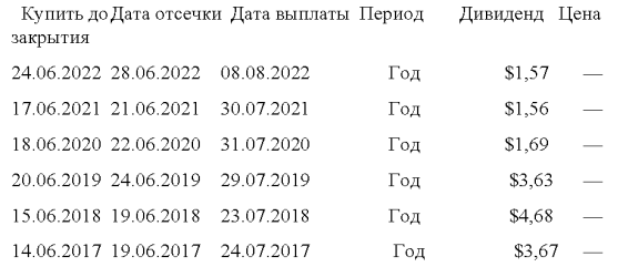 Выплата на одну акцию по прогнозу составит 0,22 $ (0,4 % дивидендная доходность). Выплачивают дивиденды не позднее 25 рабочих дней с даты закрытия реестра. Дивиденды начисляются на ваш брокерский счет или карту.