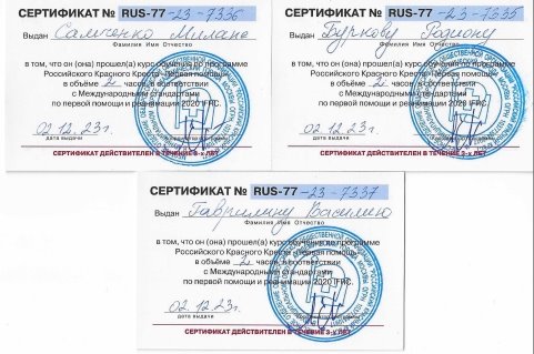 В результате обучения мы научились основам оказания первой помощи и реанимации согласно Международным стандартам 2020 IRFC. Мы получили сертификаты по программе Российского Красного Креста «Первая Помощь», которые действительны в течение 3-х лет.