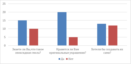 Эпоксидная смола — материал, знакомый практически каждому человеку, находящемуся в сознательном возрасте и детям, занимающимся творческой деятельностью. Но у нас возник вопрос, все ли наши одноклассники знают про этот материал и интересна ли тема создания уникальных украшений. Для этого мы провели опрос. В нём приняли участие 25 человек.
