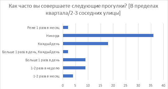 Проанализировав ответы на вопросы выше, могу сказать, что владельцам собак лучше и удобнее всего гулять возле дома или в пределах квартала/2–3 соседних улиц, потому что: