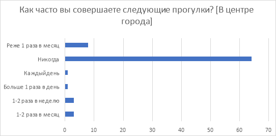 Ниже я привела основные места (парки), в районе которых со своими собаками гуляют опрошенные. Как мы можем заметить, собачники предпочитают гулять в местах с не особо большими скоплениями людей. Не стоит гулять с собаками в местах, где обычно находится много людей, потому что большое скопление людей и шум может спровоцировать у собаки панику. В лучшем случае она просто испугается, а в худшем — сорвётся с поводка и убежит (Источник: https://moi-portal.ru/novosti/722800-kinologi-ne-rekomenduyut-brat-sobak-na-massovye-meropriyatiya/).