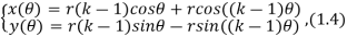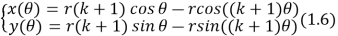 где r — радиус динамической окружности; k — коэффициент (1.5); θ — угол, образованный горизонталью и внешней окружностью. Коэффициент k — количество точек соприкосновения фигуры со статической окружностью, при этом коэффициент k — натуральное число.