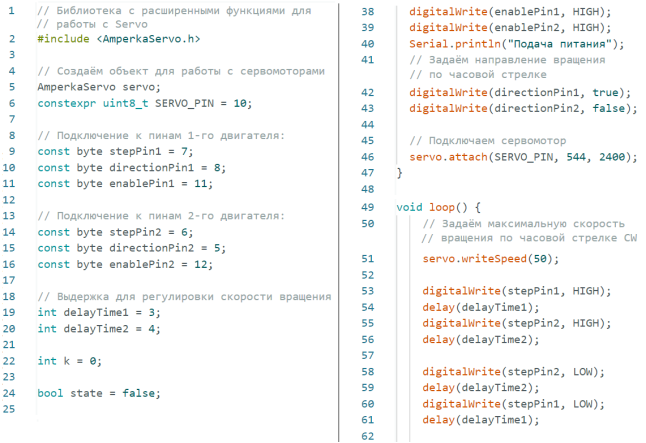 - Подключение необходимых библиотек для работы с сервоприводами.