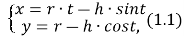 где h — расстояние точки от центра окружности, r — радиус окружности; окружность катится по прямой, совпадающей с горизонтальной осью координат. Если h = r, то трохоида называется циклоидой. Если h < r, то кривая называется укороченной циклоидой. Если h > r, то кривая называется удлиненной циклоидой.
