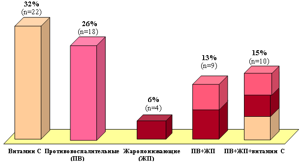 Среди всех 69 выделенных для сравнительного анализа видов лекарственных растений 32 % видов являются источниками витамина С, 26 % видов растений обладают противовоспалительным эффектом, 6 % видов оказывают только жаропонижающий и потогонный эффект, 13 % растений сочетают в себе противовоспалительное и жаропонижающее действия, а 15 % растений обладают комплексным противовоспалительным, жаропонижающим и витаминным свойствами. Эти особенности действия лекарственных растений нужно использовать при выборе растения для получения необходимого целебного воздействия.
