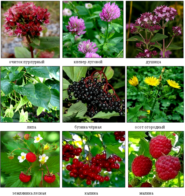 При самостоятельном лечении простуды и воспаления нужно отдавать предпочтение лекарственным растениям, содержащим витамин С и обладающим комплексным противовоспалительным, жаропонижающим свойствами. К данным средствам можно отнести настой цветов бузины чёрной, клевера лугового и липы, настой травы душицы обыкновенной, осота огородного и очитка пурпурного, а также настои плодов земляники, калины и малины (рис. 3).