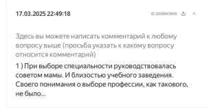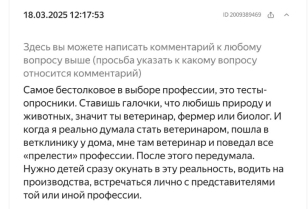– Также респонденты оставили комментарии касаемо понимания того, в чём заключается повседневная рабочая деятельность интересующих их специальностей и актуальности темы проекта (приложение 5):